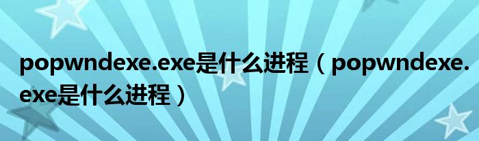 大家好,今天小悦来为大家解答以上问题。popwndexe.exe是什么进程,popwndexe.exe是什么进程很多人还不知道,现在让我们一起来看看吧!