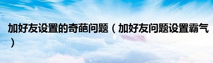 大家好,小晋来为大家解答以下问题,关于加好友设置的奇葩问题,加好友问题设置霸气很多人还不知道,今天让我们一起来看看吧!