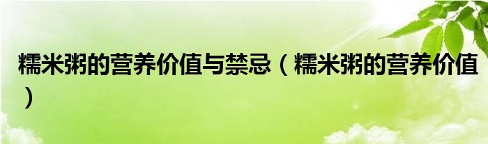 糯米粥的营养价值与禁忌(糯米粥的营养价值)