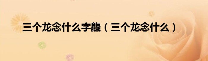 关于三个龙念什么字龘,三个龙念什么这个很多人还不知道,今天菲菲来为大家解答以上的问题,现在让我们一起来看看吧!