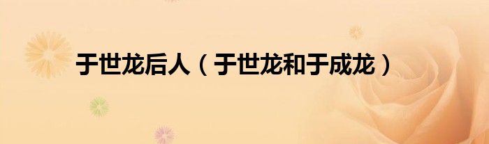 大家好,我是小科,我来为大家解答以上问题。于世龙后人,于世龙和于成龙很多人还不知道,现在让我们一起来看看吧!